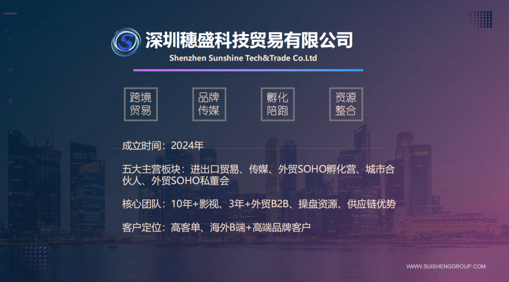 为外贸企业与品牌提供跨境贸易、品牌传媒与创业孵化全链路解决方案。